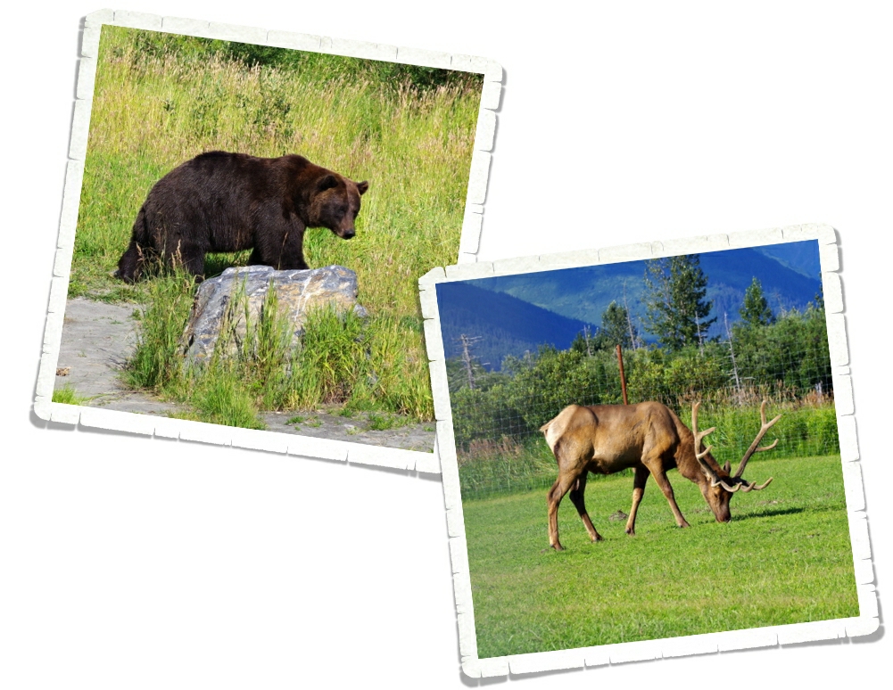 Chipmunk, salmon, sea lion, Bald Eagle, moose, elk, ptarmigan.