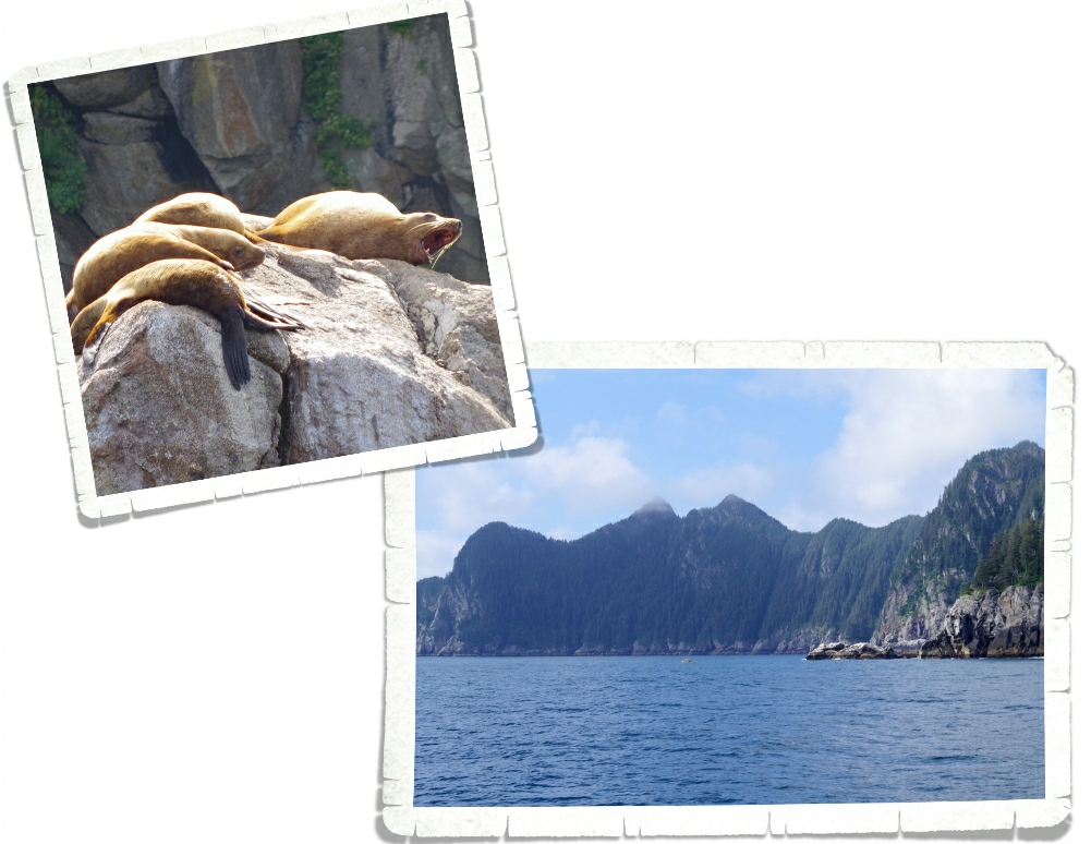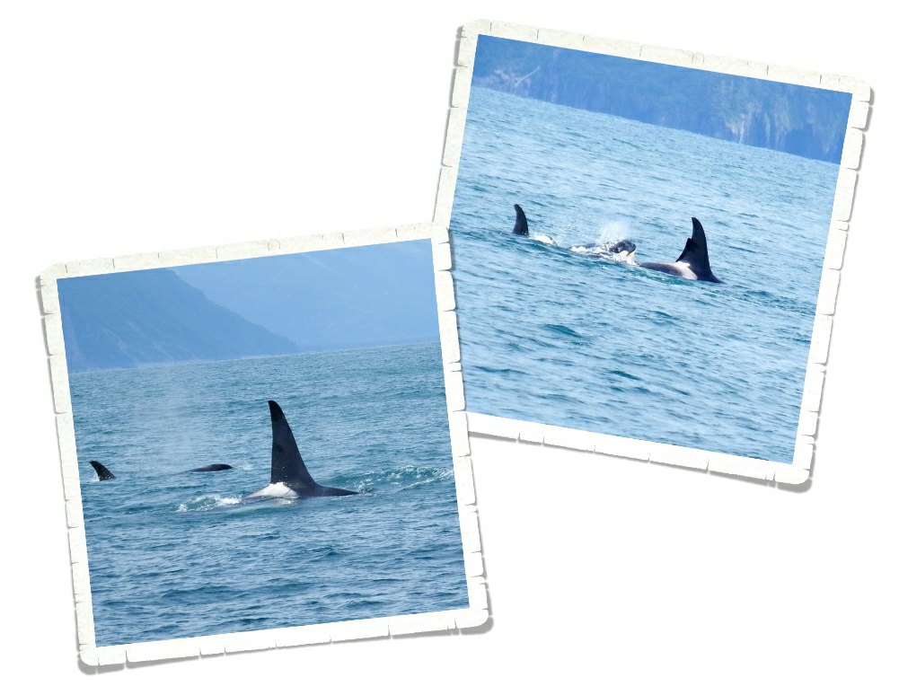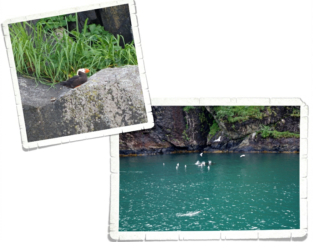 Puffin, jelly fish, Dall porpoise, harbor seals, humpback whale,