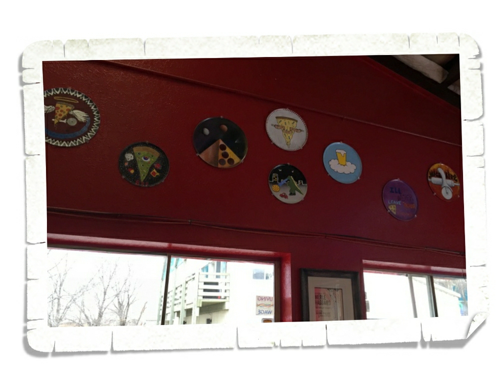 The décor was cool! The staff designed and painted the pizza pans (I think that makes it even better).