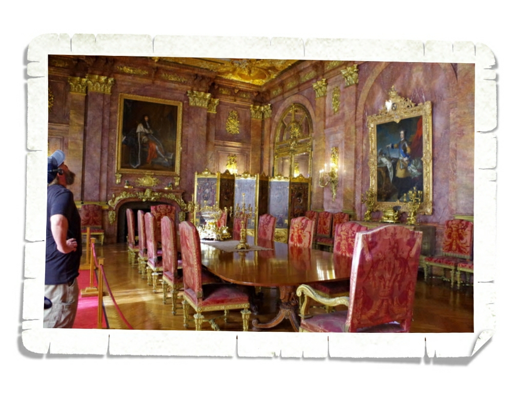 The Tapestry Gallery is more like a wide hallway with little nooks scattered about it. There are three tapestries hanging here that are a part of a set of seven. Each tapestry depicted one of the Seven Virtues. I love how ornate this fireplace we found in the Tapestry Gallery is! Check out the turtles on the bottom of the lamps.