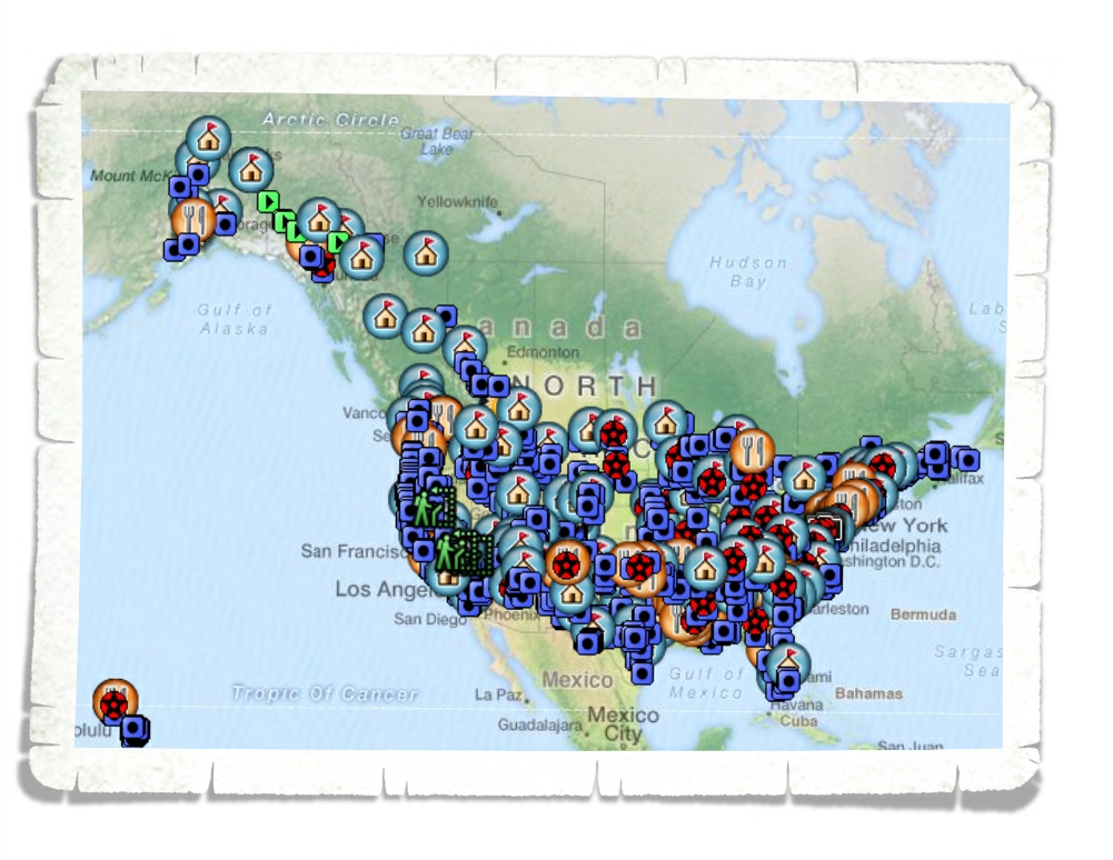 Our plan is to take one road up and take a different road back so we can see as many different areas of Canada as we can. The little blue squares indicate something to do or see, the tents indicate a place to stay, the fork and knife are places to eat we don’t want to miss, and the suns mean there’s a day trip there. While we have a list of what we want to do or see, it’s forever changing. We find new things or someone tells of a “must see” place and that’s awesome! We love insider’s tips so if y’all have one let us know!!