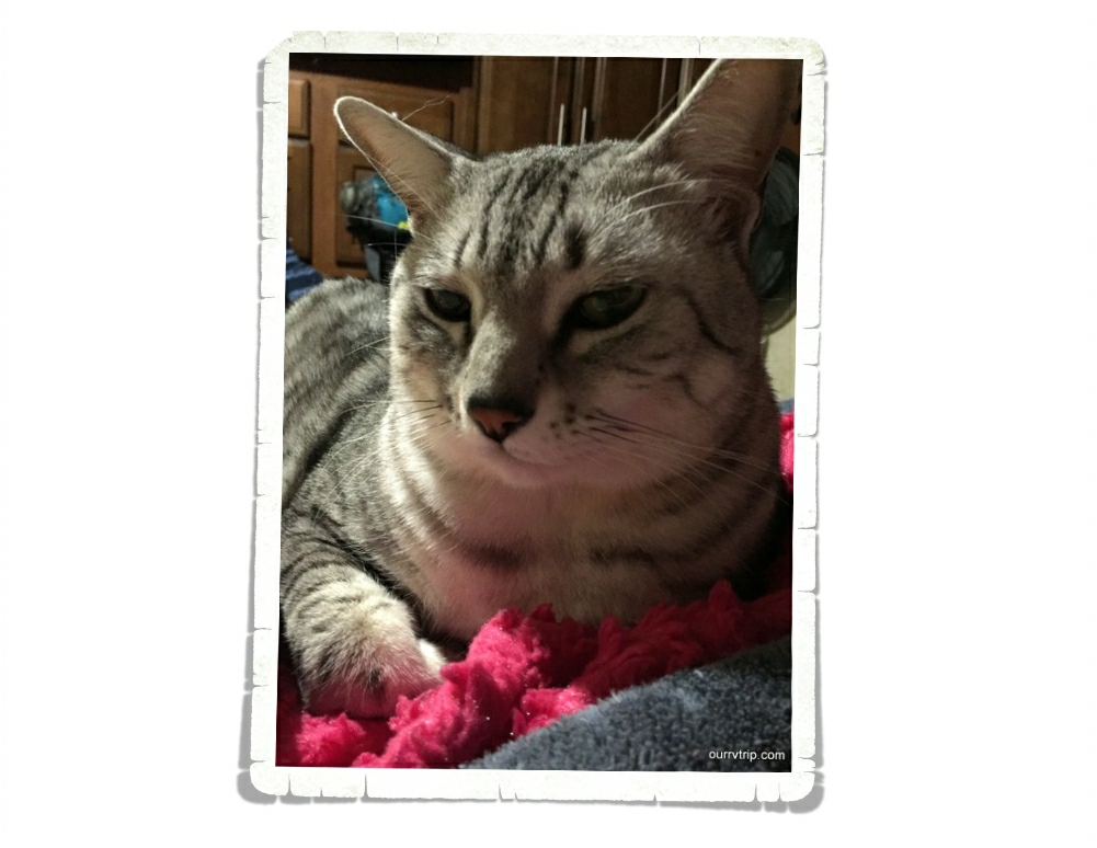 Our day starts off like yours. Jerl gets up around 6’ish and I get up around 7’ish. Our cats would like us to get up about 4’ish and feed them. That doesn’t happen. Sadi (you can see her in the pic above) is my shadow all morning until she’s fed. She’s a foodie. She fits in well. The very first things we do are make the bed and get dressed.