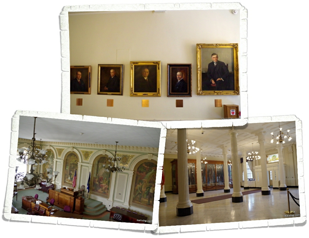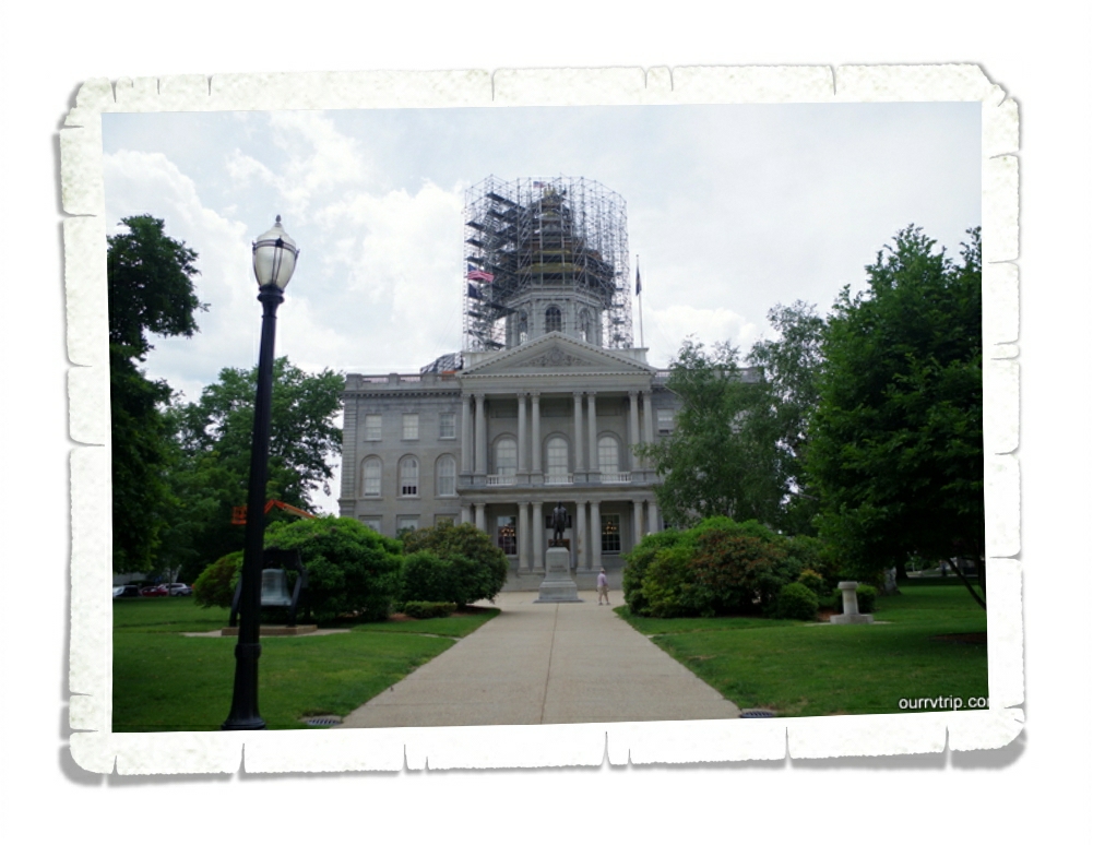 Let’s start with the Capitol Building. It’s gorgeous! Look at that golden dome! The inside didn’t disappoint either. We did a guided tour at this SCB and on it we met a lovely family from England! It was interesting to hear their take on the building and America. When we got to the inside of the dome, we stood there with our mouths open for a minute. Look at that stained glass!! All thirteen original colonies are represented in this stained glass. Love it! I couldn’t leave out the tile floor. It’s so pretty! This Capitol Building is high up on our favorites list. It didn’t disappoint at all. I could do an entire post about it, but we’re leaving the Hampton Falls area tomorrow and I’m not sure I’ll have cell service at our next spot so I’m trying to get all caught up on my posts. If you’re in the area though…make time to visit this SCB!