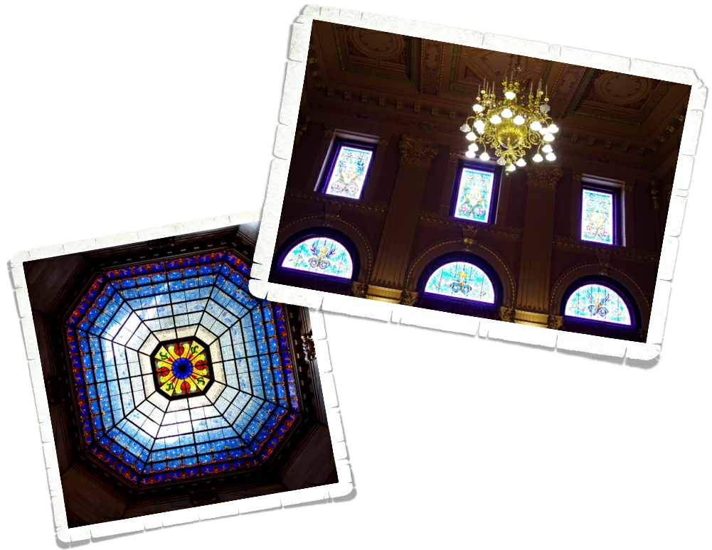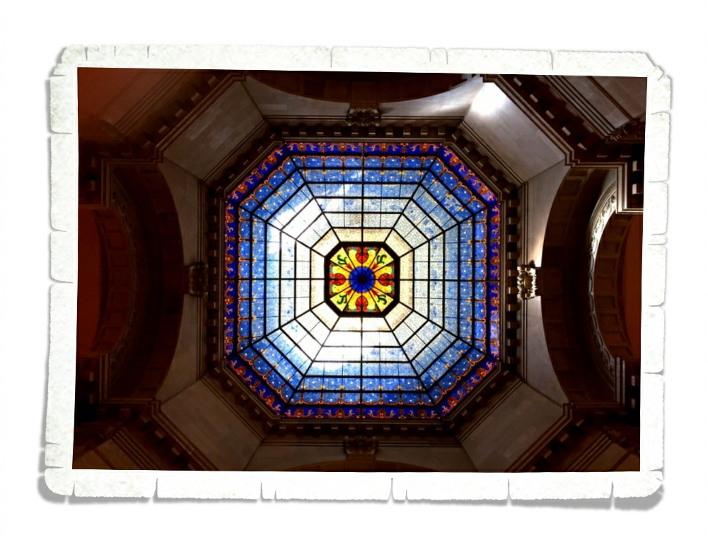 I’m going to leave you with another look at that gorgeous stained-glass dome. Isn’t it pretty? Oh, and by-the-way…if y’all could arrange for us to have nicer weather while we’re in your respective states we would greatly appreciate it. *winky face*
