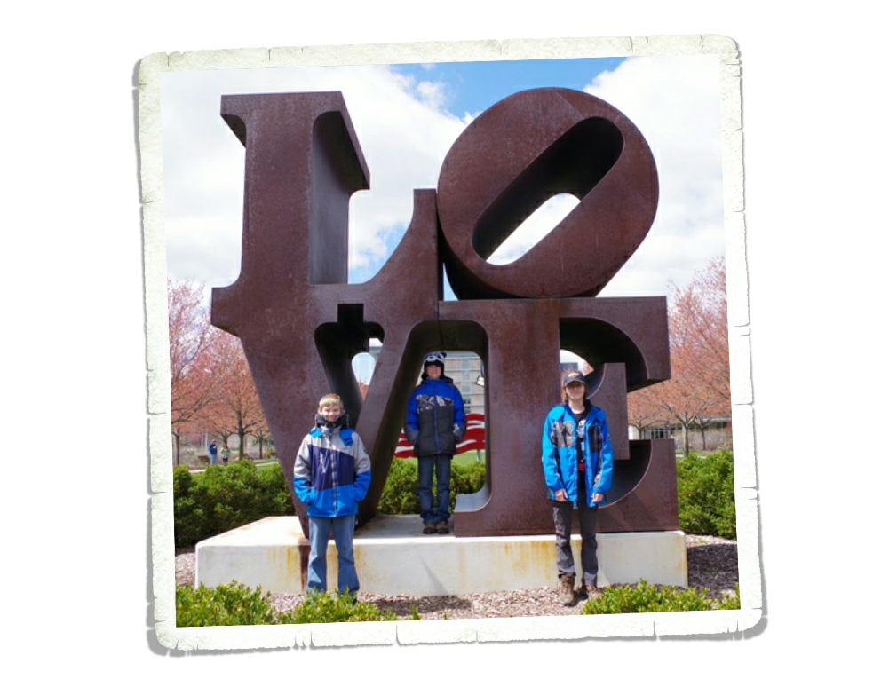 Yep. It’s a LOVE statue. I know…it’s been done a thousand times, but I couldn’t help it. I’m sure you’ll see our kiddos in front of other LOVE statues before we’re done.