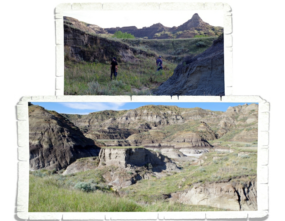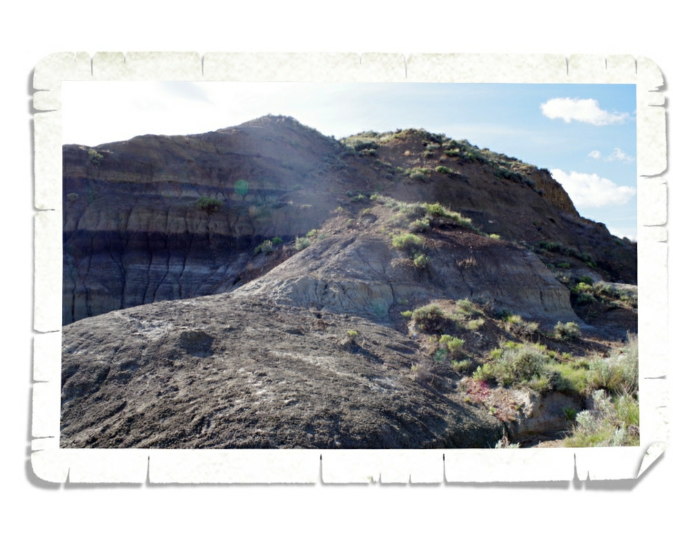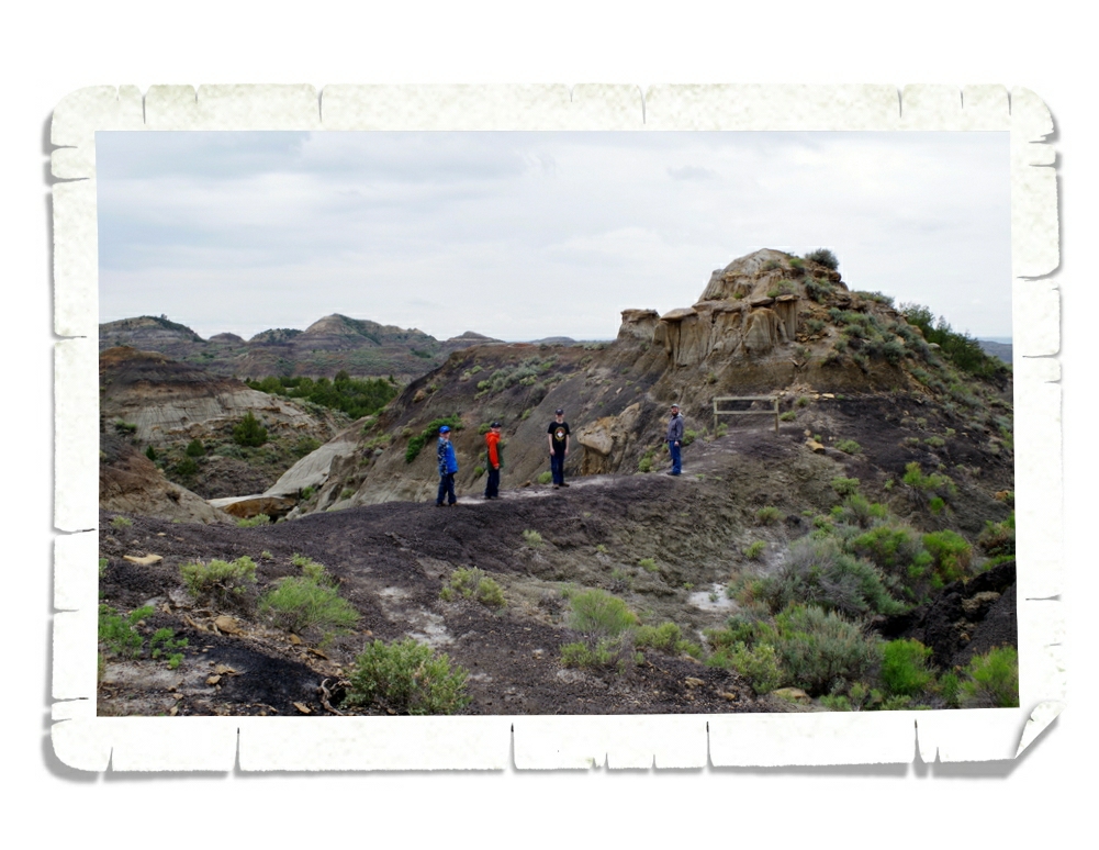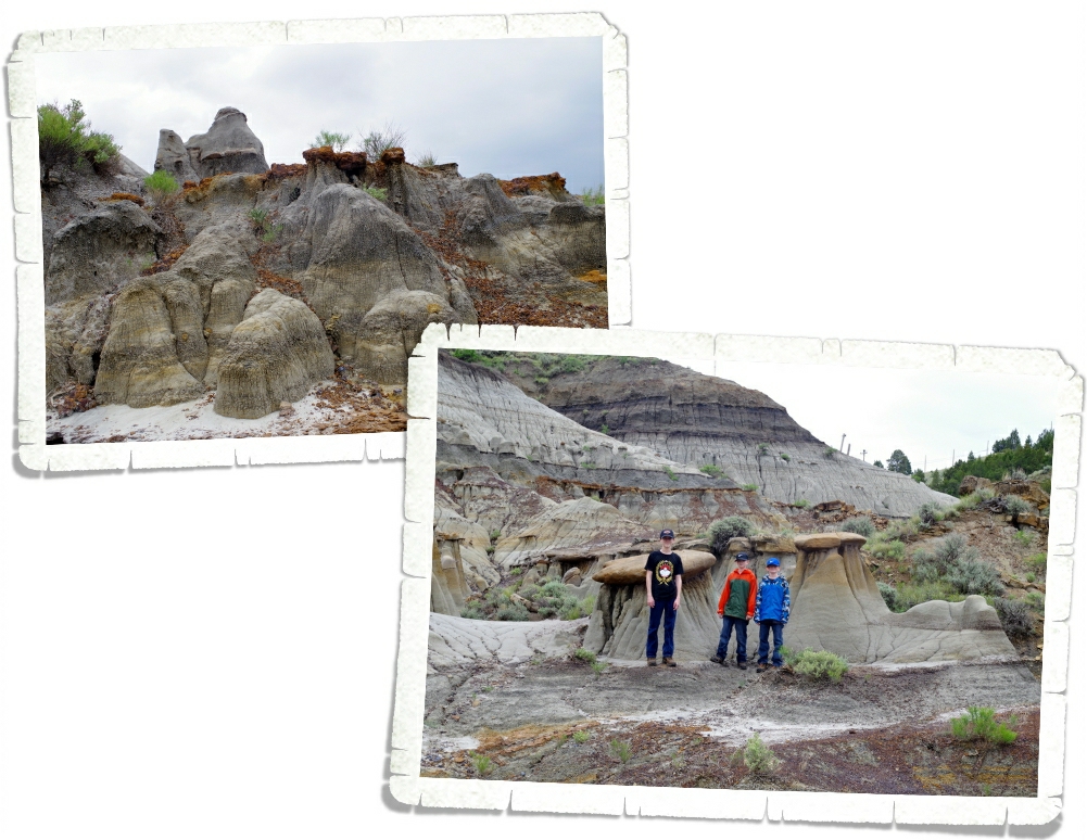 It had rained in the area the entire day before we went to Makoshika. We knew we were in for some mud…but we didn’t expect the gumbo. What is gumbo? It’s not what you think. There’s no shrimp or sausage or okra in it…you don’t eat this gumbo. This particular type of gumbo is a fine silty soil that forms an extremely sticky mud when it gets wet. It sticks to everything and makes perfectly good hiking boots completely useless. See that dark blackish brown stuff they’re all standing on in the above photo? Yup, that’s gumbo. We slipped and slid up and down the Cap Rock Trail on this stuff for a good hour that morning and ended up having to turn back because we felt it was too dangerous to go on. The rock formations were really other worldly. It felt like we’d been transported to the moon!